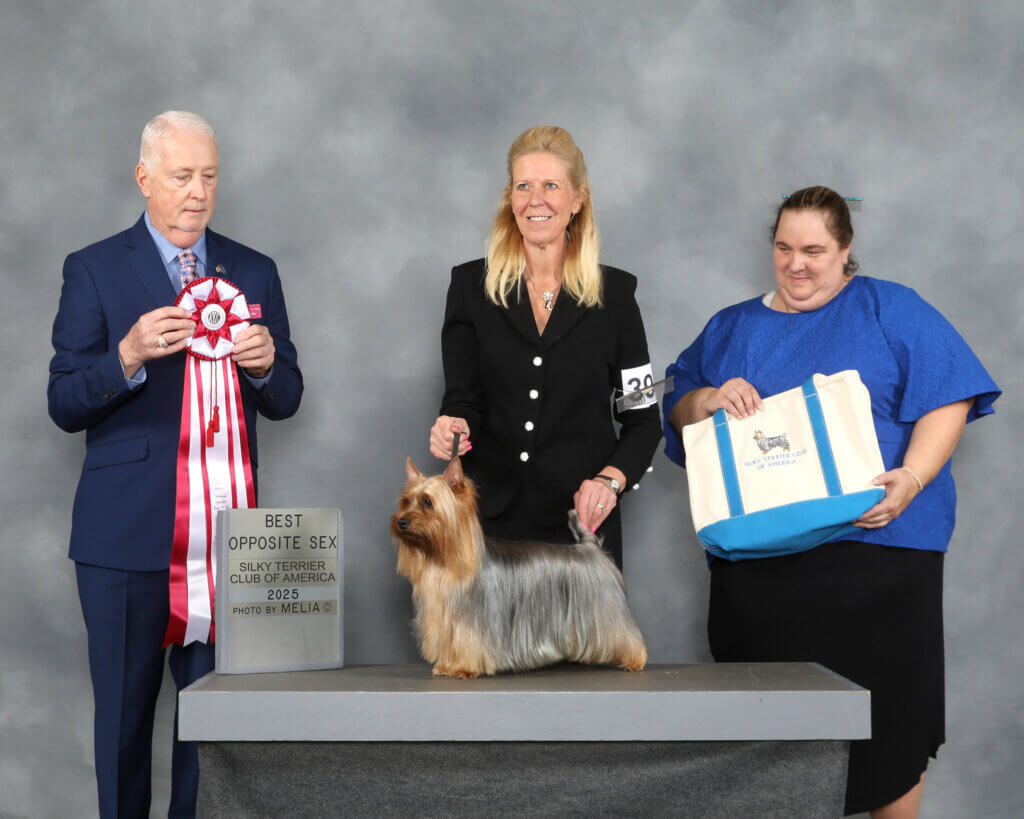 Since 1981, Tessier has been breeding and showing quality Silky Terriers. We are proud to be an AKC Platinum Breeder of Merit — That is, we follow our club-recommended Health Tests and have produced over 100 homebred Champions.